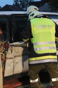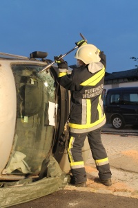 Eine weitere Übungsannahme war ein Verkehrsunfall auf der B45 mit 2 eingeklemmten Personen und bewusstlosen Personen außerhalb der Fahrzeuge. Die Rettung der eingeklemmten Personen wurde mittels hydraulischem Rettungsgeräts durchgeführt.