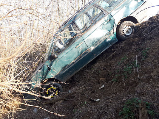 Die Alarmierung erfolgte um 19 Uhr mit den Worten: "Menschenrettung aus KFZ, Auto hängt mit der Front in der Botanik, Zufahrt über die Hubertuskapelle, Einsatzort befindet sich in der EBEN (Kataster), schwierige Zufahrt wegen 20%igen Gefälle, Einweiser vor Ort."